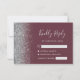 Modern Burgundy Silver Faux Glitter Edge RSVP Card