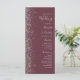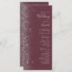 The left-hand edge of this elegant modern wedding program features a silver faux glitter design. The customizable text combines silver gray handwriting, copperplate and italic fonts on a burgundy background.