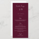Check out this All-in-One Modern Menu Table Escort Place Card with Thank You for your wedding or party event! This menu card features a clean and simple serif typography font and handwritten script in a burgundy background. The simplicity and clean design of this menu works well with all wedding themes and definitely a great addition to your wedding and/or party event needs. You just customise and personalise the menu with the guest's name, their seating table number, and your menu. On the back, you enter in the newlywed/couple's names with thank you message for a personal touch from the newlyweds or hosts.