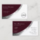 Modern Burgundy White with Silver Decor and Logo Business Card