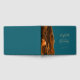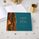 This elegant wedding guest book features a watercolor agate design in shades of rust and burnt orange, trimmed with faux gold glitter. Easily customise the gold-coloured text on a teal blue background, with the names of the bride and groom in whimsical handwriting calligraphy over a large ampersand. Add additional text of your choice to the front and spine.
