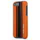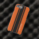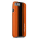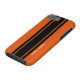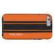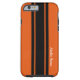 A modern mens fashion Vibe iPhone 6 case with sporty burnt orange and black racing stripes. Add your name to this sleek and stylish sports car striped device cover just for guys.