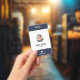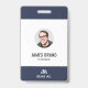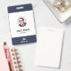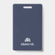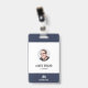 A modern business ID badge featuring the photo, name, occupation of a staff member. The also includes the business name and logo on the front and back of the badge. The main colour of the badge can be personalised by changing the background colour.