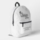 Professional white backpack for your business featuring your logo. Add your business name, slogan, website, socials or other text in modern typography on the front pocket.