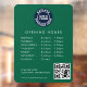 Modern Business Logo QR Code Opening Hours Green Window Cling