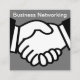 Business networking business card template in a unique square format with image of shaking hands representing partnership and cooperation and your contact information on the flip side.