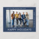 Minimal modern blue business Christmas holiday postcard featuring a photo of your corporate team. Personalise your happy holidays greeting, company name and customer/client thank you message in simple white typography. On the back, add an additional message of gratitude.