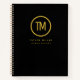 Modern initial monogram notebook circled in black and gold with personalised name. Some two letter combinations may not connect. Easily keep plans, notes and goals all in one place.