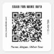 Simple modern QR code sticker for your business or organisation. Upload your scannable QR code, and personalise up to four lines of text with your name, slogan, tagline, website, phone number, etc., or delete. You can change the colour of the background and typography by selecting "customise further."