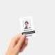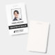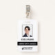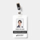 A modern business ID badge featuring the photo, name, occupation of a staff member. The modern employee ID also includes the business name and logo of the company. The colour of any design element of this staff ID badge can be personalised.