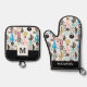 Modern Cactus Geometric Pattern Oven Mitt & Pot Holder Set