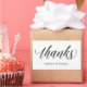 These simple, stylish wedding stickers say "thanks" in elegant black calligraphy, and have room for you to personalise with your names.