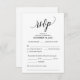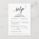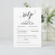 This is the beautiful Modern, Calligraphy, Elegant RSVP (Respond) Enclosure Card, in Black font, where you can edit, change colour and format it as per your design requirement, with meal options, reserved seats, number attending and song request option.