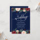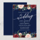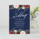 Modern Calligraphy Burgundy Floral Wedding Blue Invitation
