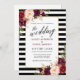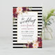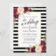 Modern Calligraphy Burgundy Floral Wedding Striped Invitation