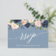 Modern Calligraphy, Elegant Watercolor Dusty Blue Pink Blush Floral Wedding RSVP Card