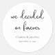 This minimalist sticker features a modern minimalist "we decided on forever" phrase in modern handwritten font. It's easy to personalise to match your wedding colours, styles and theme. To change details, click «Personalise». To move the text or change the size, font, or colour, click «Edit using Design Tool». Designed to coordinate with for the «Carolyna» Wedding Invitation Collection, matching items available. Please don't hesitate to reach out if you have any questions regarding the product's design; I'm happy to help!