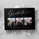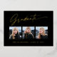 Three photo, stunning, modern and elegant graduation announcement gold foil cards (your choice of gold silver or rose foil), featuring design elements of modern text with calligraphy ink script. The graduate's photos are artfully accented with a delicate & minimalist partial boarder. The back of the card offers personalised text spaces for information about your graduation or can be cleared if you wish to hand write a message. Black & White or easily customise the background to match your school's primary colour or any colour of your choice. Perfect for the high school, college and university grad student.