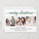 Modern Calligraphy Script Merry Christmas 3 Photo Holiday Card - Green Script