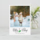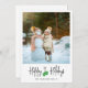 Modern Christmas Holiday card with one large photo, calligraphy script, green mittens and custom message.