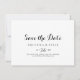 This modern calligraphy horizontal wedding save the date is perfect for a rustic wedding. The simple and elegant design features classic and fancy script typography in black and white.