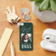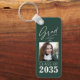 A trendy, new two sided, sturdy aluminium, Graduate keychain - keyring with your photo on the front. All Personalised, featuring "Grad" in elegant calligraphy ink script with "Class of, The Year, School Name & Your Name" in modern typography. The graduate's photo is artfully accented with a delicate gradient boarder. The text and trim are white with the background in a modern mint green colour. If you wish, easily edit the background colour to your school's primary colour. The perfect Graduation gift idea for high school, college and university students.