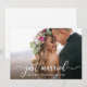 Modern Calligraphy Just Married Wedding Photo Announcement