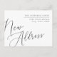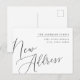 Custom-designed moving announcement postcard featuring "new address" whimsical and modern hand calligraphy design. Personalise with family name and address for a modern and stylish moving announcement card.
