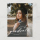 Photo graduation announcement postcard featuring a modern calligraphy script. Personalise with your own graduation year, school and more. Add extra information about the ceremony and graduation party on the back.