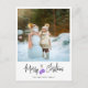 Modern Christmas Holiday postcard with one large photo, calligraphy script, purple mittens and custom message.