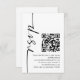 Modern Calligraphy QR Code Wedding RSVP, to enclose with your invitations, RSVP is in a set elegant calligraphy rotated and to the left, with your message to the right. Easily personalise the rest of the text to your own details and replace the sample QR code with your own simply by changing the sample url with your own which will be automatically generated.