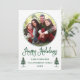 Modern Fun Calligraphy Script Happy Holidays Round Photo Frame Holiday Card includes Watercolor Pine Trees - Forest Green Back