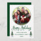 Modern Calligraphy Round Photo Frame Green Pines Holiday Card