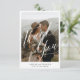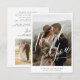 Elegant, romantic, trendy chic, hand-lettered white script wedding thank you card template with two photos, your custom text, and signature.