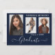 Modern Calligraphy Script 3 Photo Blue Graduation Announcement