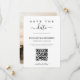Modern and elegant design printed Minimalist Calligraphy Script QR Code Photo Save the Date that can be customised with your text. Please click the "Customise it" button and use our design tool to modify this template. Check out the Graphic Art Design store for other products that match this design!