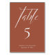 Modern Calligraphy Script Terracotta Wedding Table Number