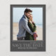 An elegant simple save-the-date wedding card with a modern elegant engagement engaged couple with a two photo picture layout, with a scannable QR code for website online information and more details, a stylish trendy typography font text, a golden neutral budget friendly postcard, a minimal save our date card, a creative stylish calligraphy script, a simplistic elegance save-the-date, a simple modern border photo cards, a modern save the date cards, a casual modern save the date