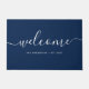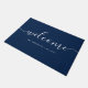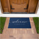 Doormat featuring the word "Welcome" in modern calligraphy script and that you can personalise with your family name all against an editable background colour (click customise to change).