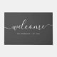 Doormat featuring the word "Welcome" in modern calligraphy script and that you can personalise with your family name all against an editable background colour (click customise to change).