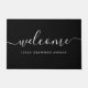 Doormat featuring the word "Welcome" in modern calligraphy script and that you can personalise with your street address all against an editable background colour (click customise to change).