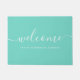 Doormat featuring the word "Welcome" in modern calligraphy script and that you can personalize with your street address all against an editable background color (click customize to change).