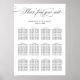 A timeless and elegant wedding seating chart featuring refined calligraphy script on a classic background, perfect for a formal and sophisticated wedding celebration. For customisation or additional products featuring this design, please feel free to contact me.