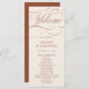 A timeless terracotta dessert theme and elegant wedding program featuring refined calligraphy script on a classic background, perfect for a formal and sophisticated wedding celebration. For customisation or additional products featuring this design, please feel free to contact me.