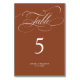 A timeless terracotta dessert theme and elegant wedding table number featuring refined calligraphy script on a classic background, perfect for a formal and sophisticated wedding celebration. For customisation or additional products featuring this design, please feel free to contact me.