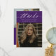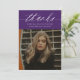Modern Calligraphy Two Photo Purple Graduation Thank You Card features minimal typography and one photo on the front, along with a second photo on the back and optional details.