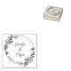 This "Wedding" rubber stamp features a flower frame with couple calligraphy names and celebration date.