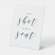 Custom-designed wedding seating table sign featuring "Take a Shot and Take a Seat" modern calligraphy design.