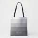 Modern Calm Gradient Grey Stripes Custom Name Tote Bag