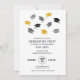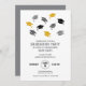 This modern and gender neutral invitation is ideal to celebrate a graduation party. The festive design include several graduation caps in different shades of black, grey and golden yellow. This is a happy invitation great for a young and proud high school or college student.